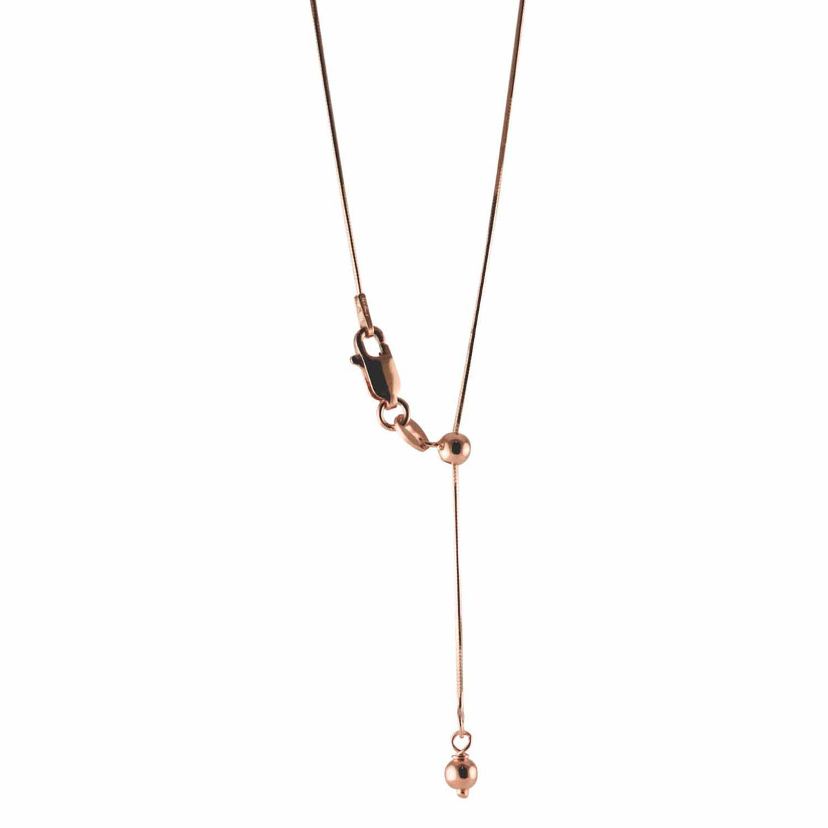 apop chain, suitable for adjusting at any length, total length is 22 inch. Chain may be adjusted with round bail. Lobster claw for safety clasp. Made of .925 sterling silver. While total length is 22 inches it may be adjusted to shorter length desired. snake-chain style. Round ball charm at end.