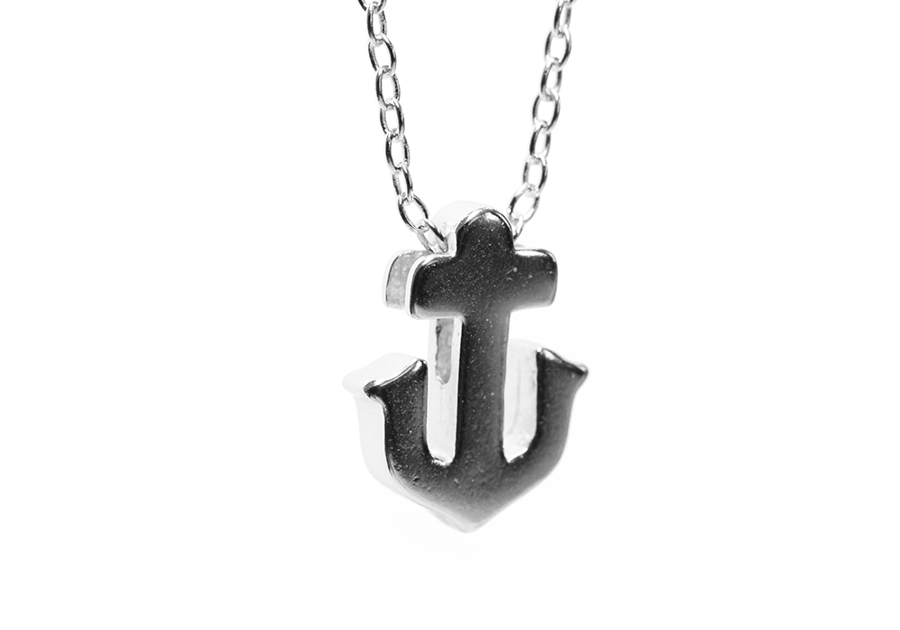 sail away, a cute and small gold anchor pendant on a silver chain, Made of .925 sterling silver, plated in gold. Silver chain features a silver anchor pendant at center. .approximately .50 inch. Necklace Length Sizing Guide We recommend keeping plated items away from moisture.