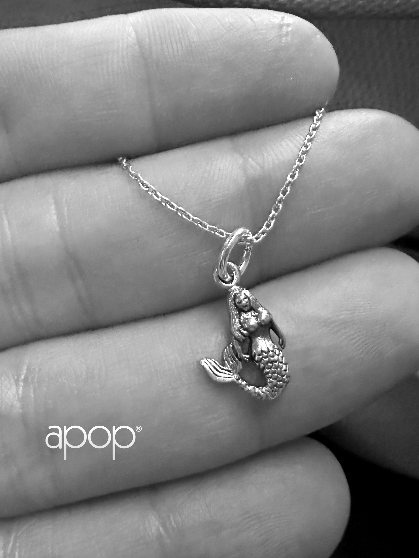 mini mermaid pendant, made of .925 sterling silver. Cute alone or with other pendants. Small pendant.