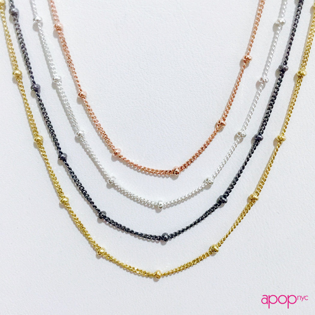 Style Notes: Visit our Chains Only Collection and choose your own necklace in rosy, gold-dipped or black to add a mixed metal finish or a classic long sterling chain.