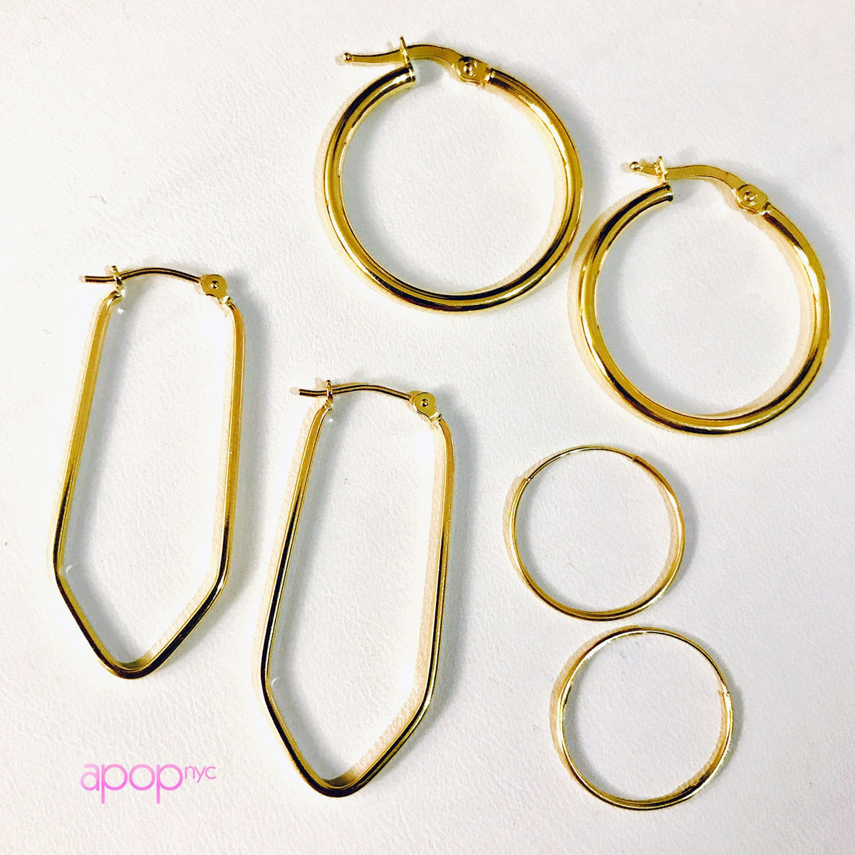 A unique pair of whisper thin 10k gold hoop earrings. Made of 10k yellow gold. Dainty hoops that will give your outfit a luxurious appeal. Click top closure. The perfect sculptural hoop for a casual or fine affair.
