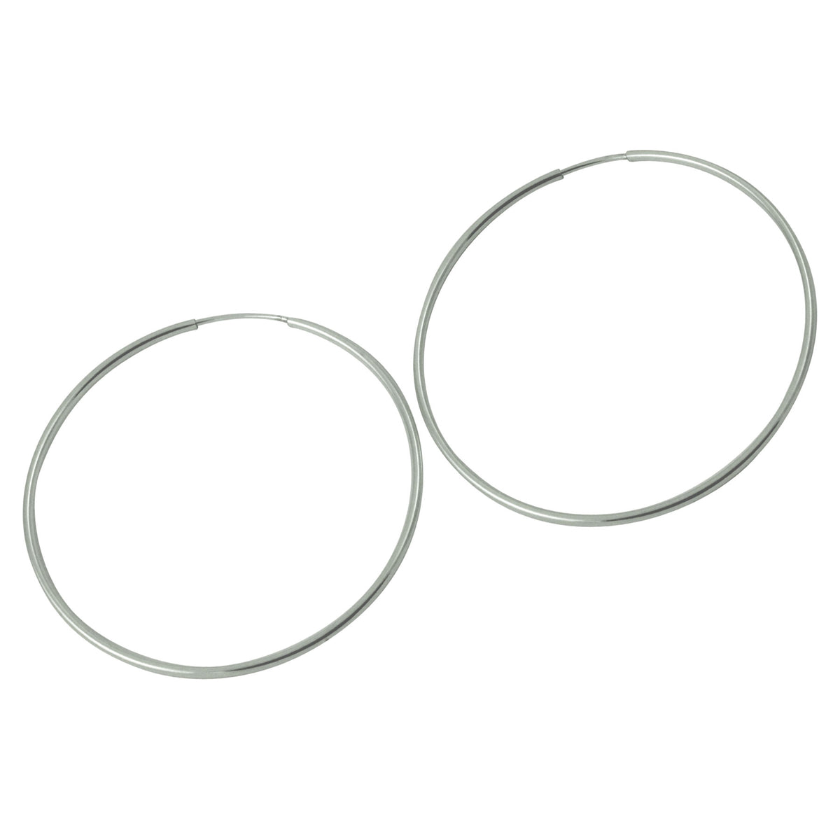 Large thin silver huggie earrings, Made of .925 Sterling Silver. Round Design. Endless hoops. polished finish. Insert top, endless/seamless closure. Made in USA.