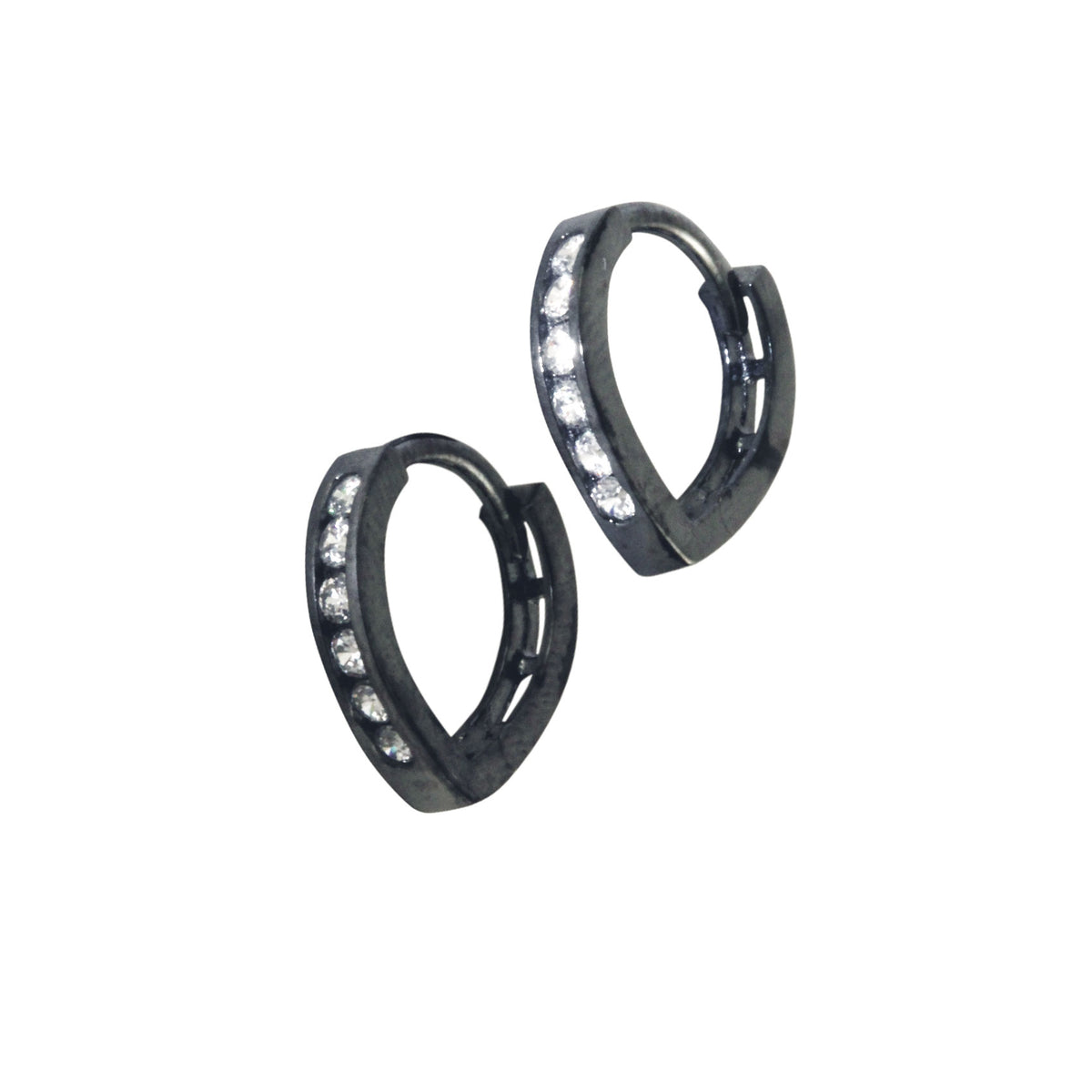 Blackened Silver Huggie Hoop CZ Earrings