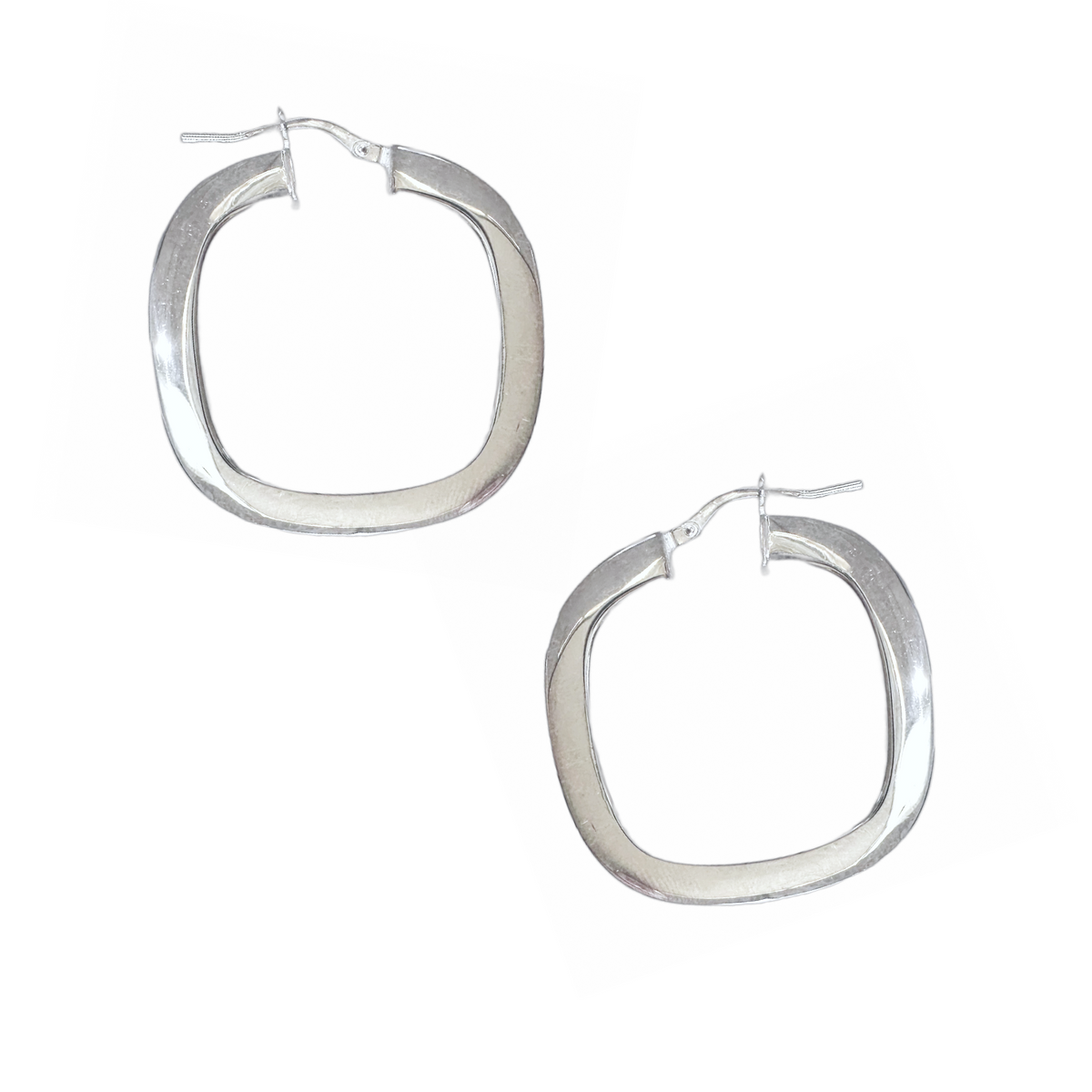 Unit price / perModern square hoops. Made of .925 sterling silver. Square motif, polished finish. Made in Italy.