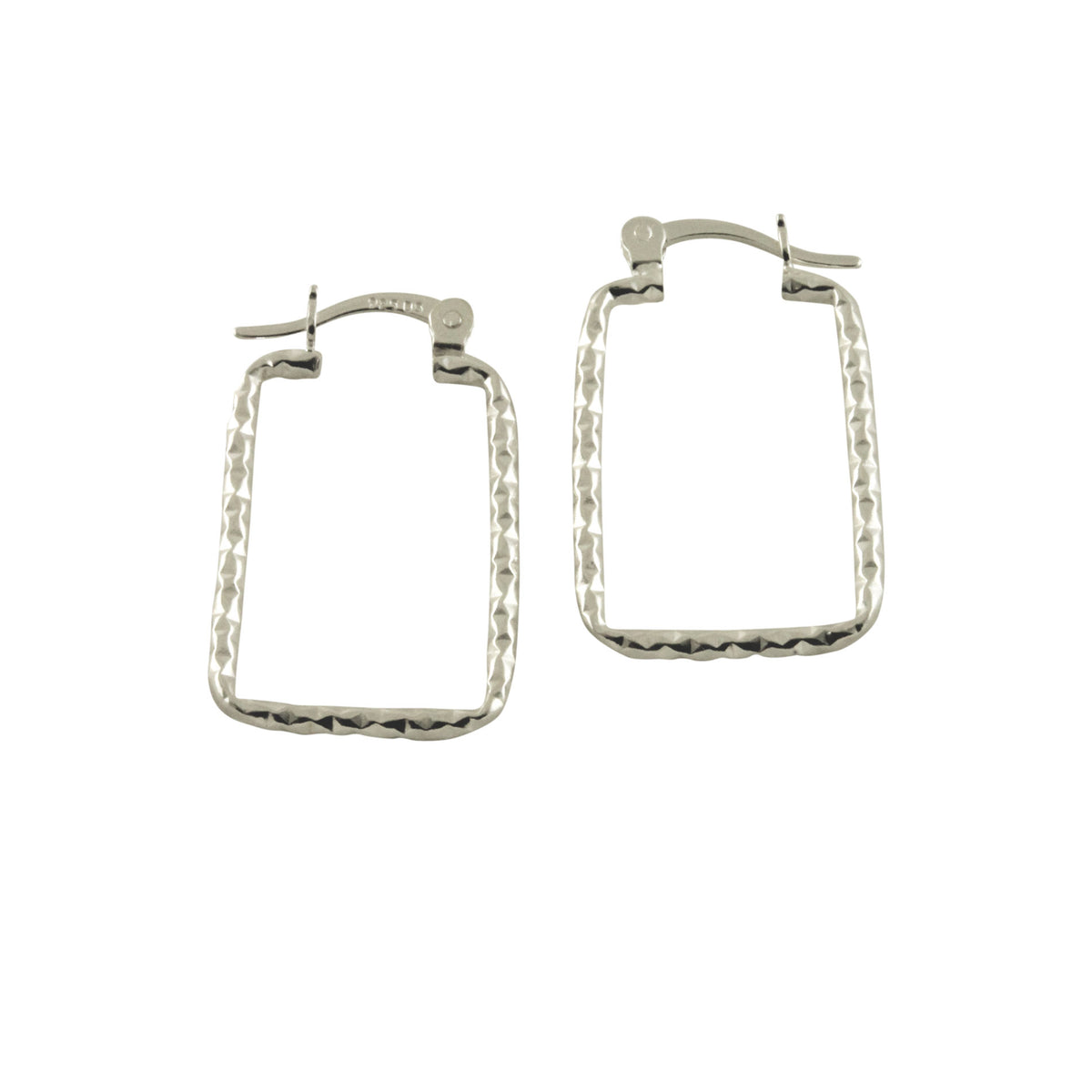 small square rectangular hoops. razzle dazzle, Made of .925 sterling silver with a diamond-cut finish. Rectangle-Square motif.