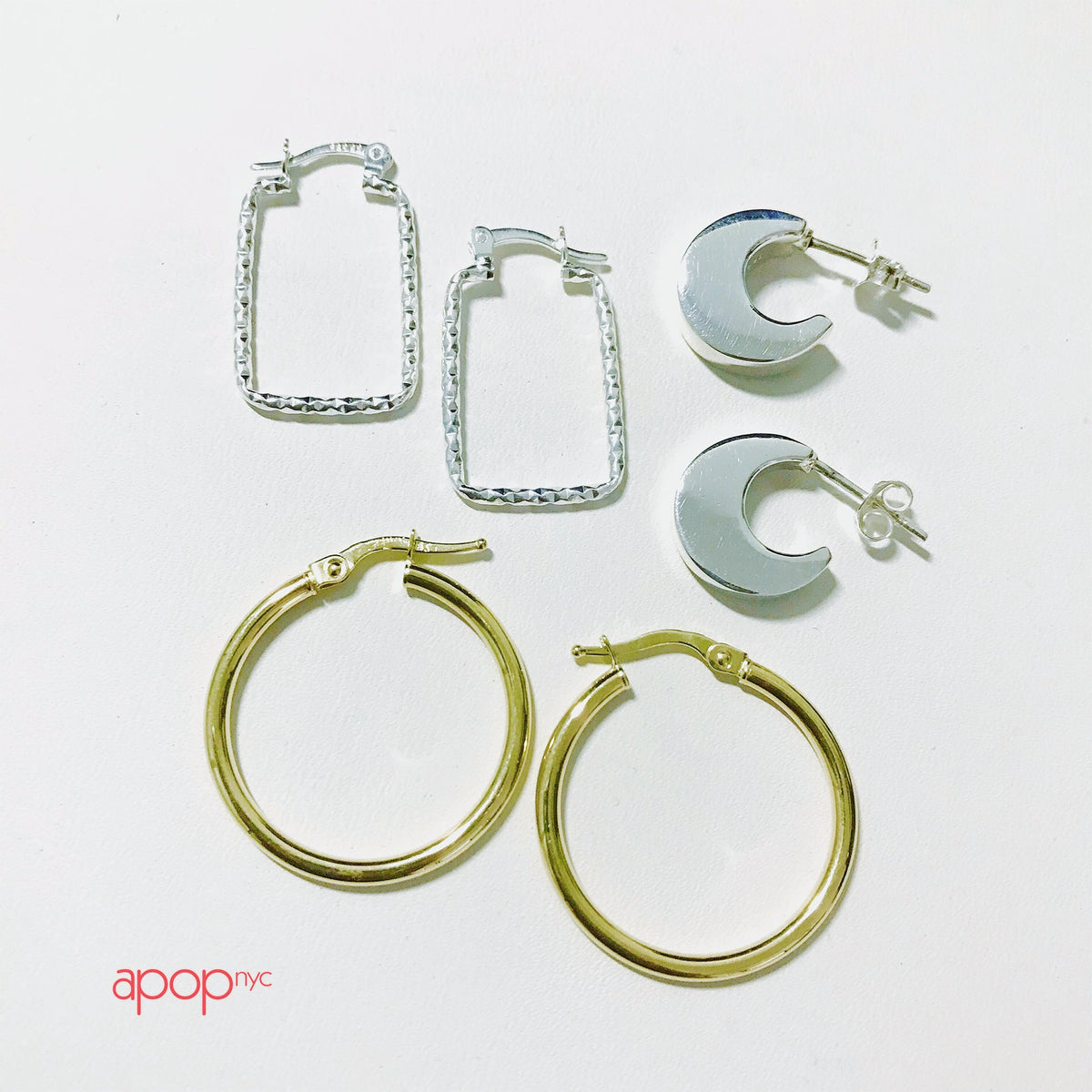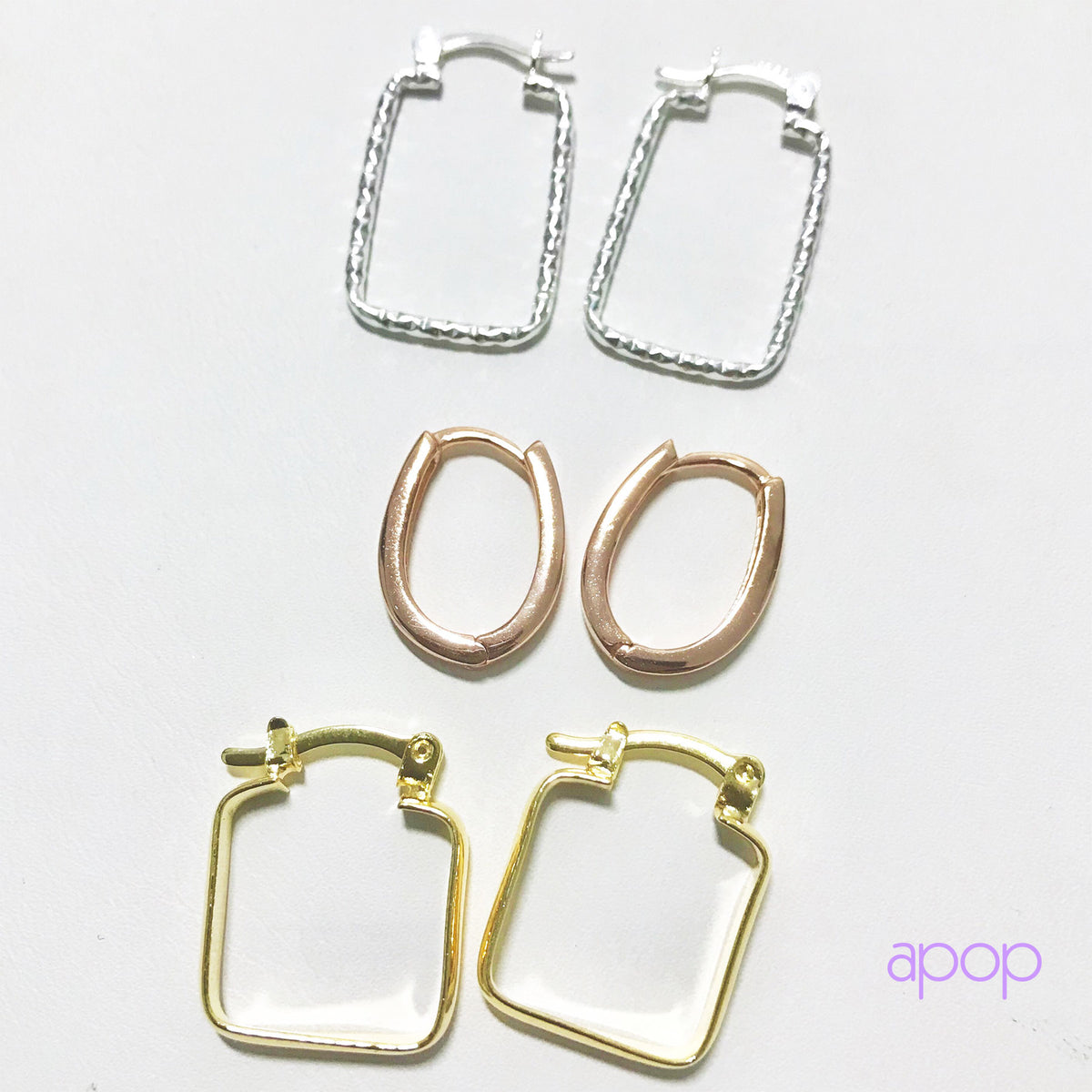 Unit price / persmall square rectangular hoops. razzle dazzle, Made of .925 sterling silver with a diamond-cut finish. Rectangle-Square motif.