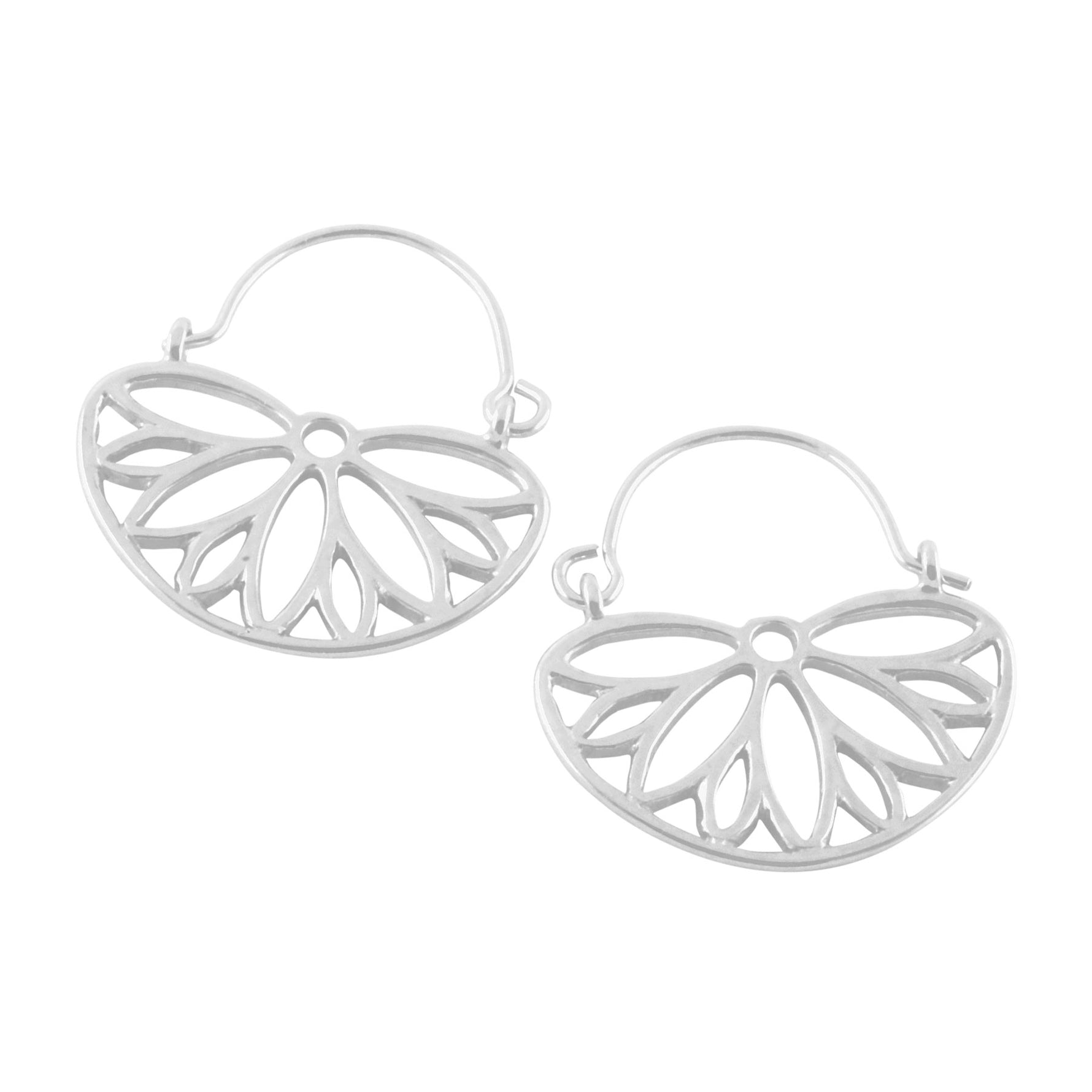 Hoop it through! cute Flower hoops, lotus style earrings, Made of .925 Sterling Silver, open work. floral style.