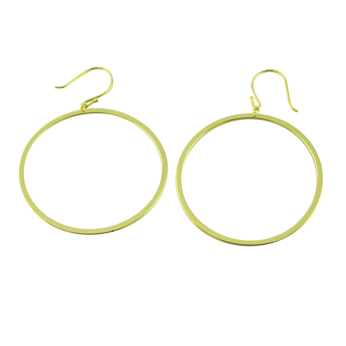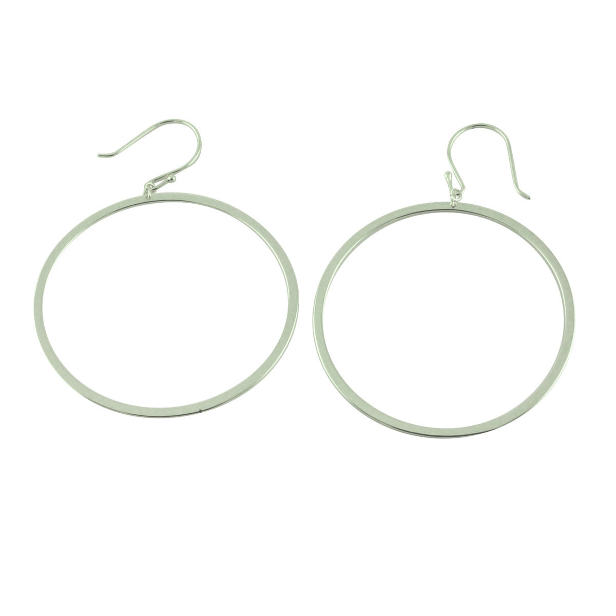 Stunning and modern circle shaped drop earrings, Made of .925 sterling silver. Open hoop motif. Smooth, polished finish.