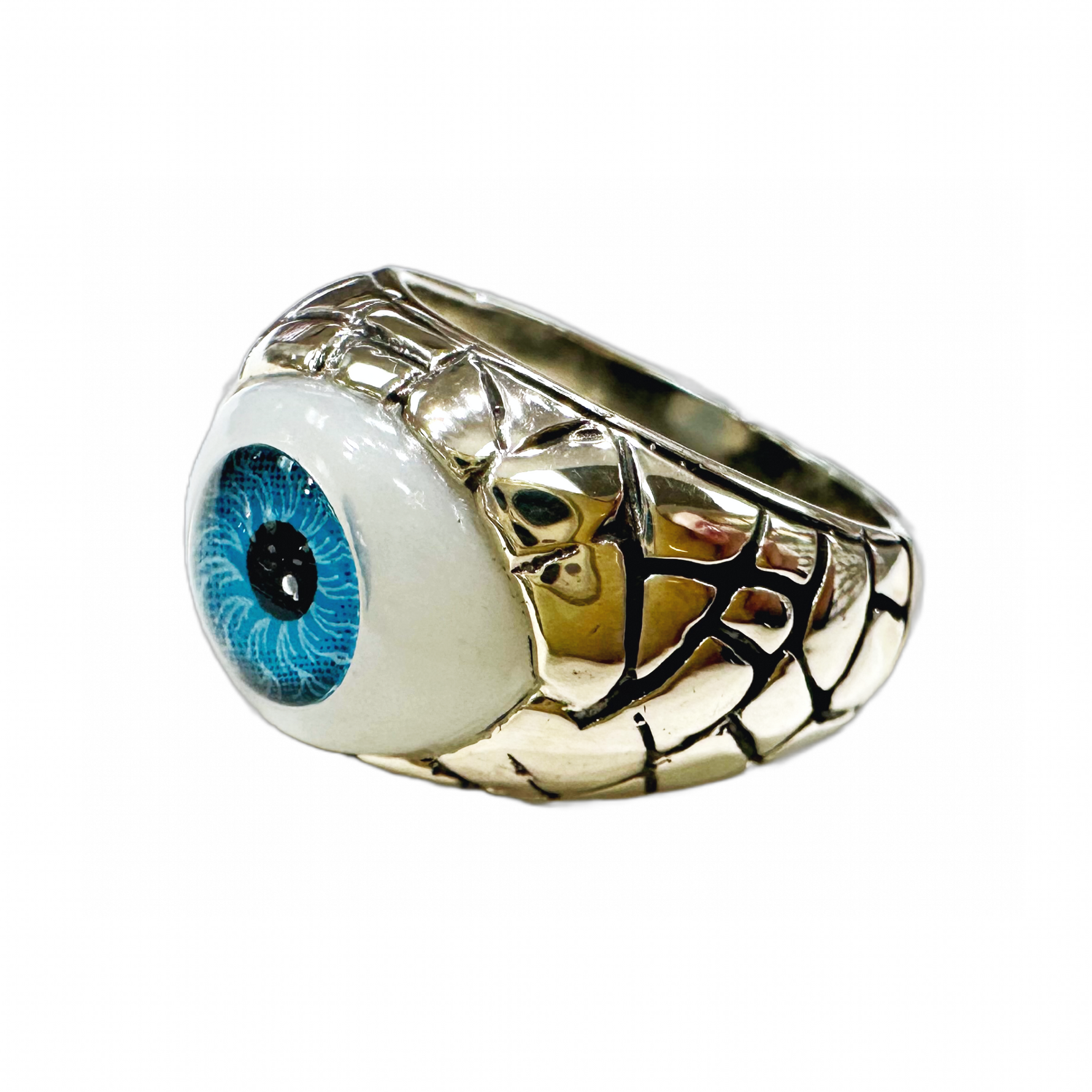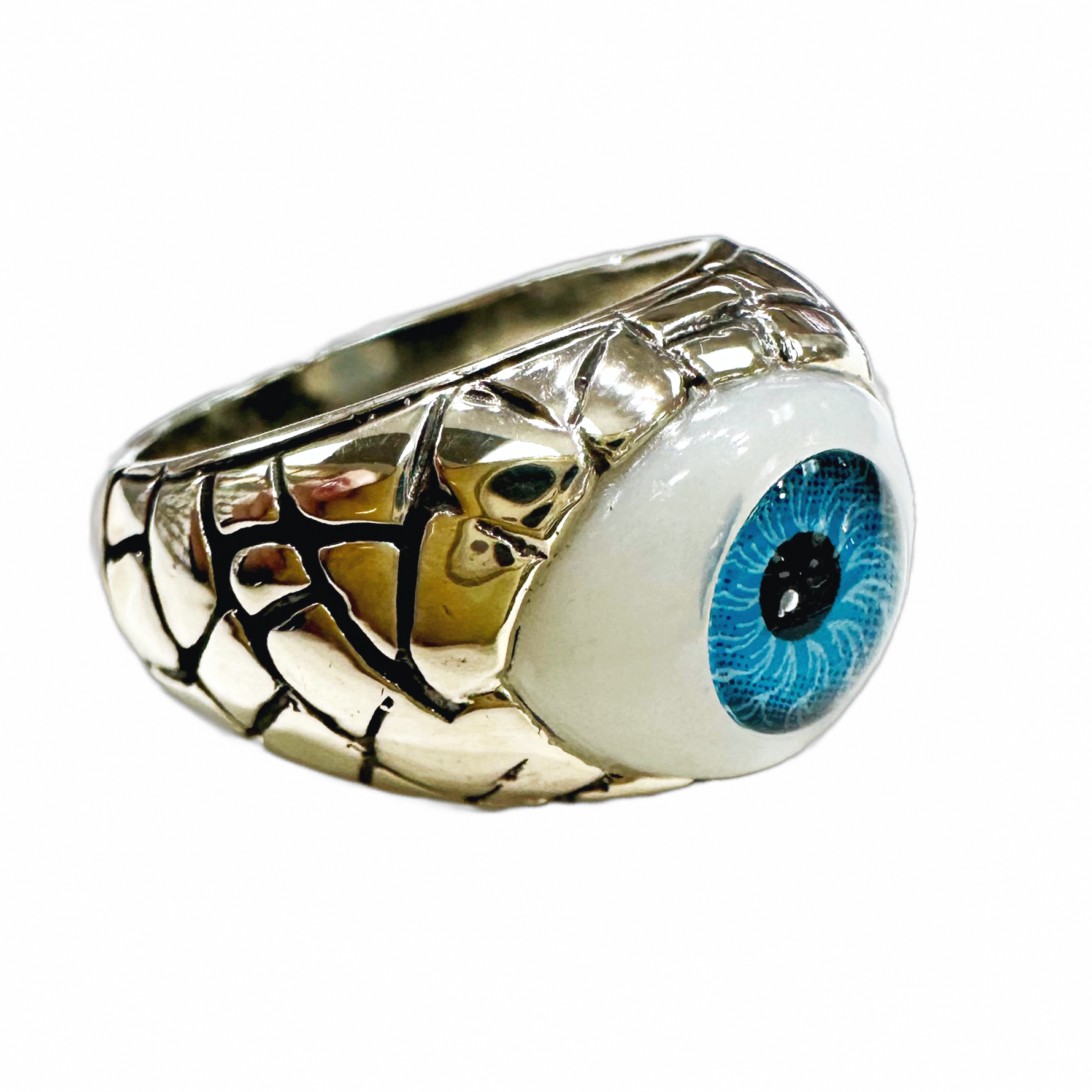 Strong glares with this evil eye ring, textured etched details make a pebbled pattern. apop Original Evil eye ring is made of solid .925 sterling silver. Featuring a glassy blue evil eye.