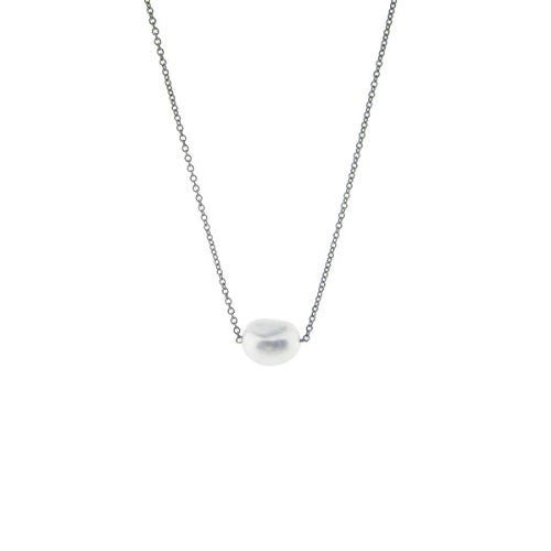 Blackened Silver Natural "Baroque" Single Pearl Necklace 16-18 inch