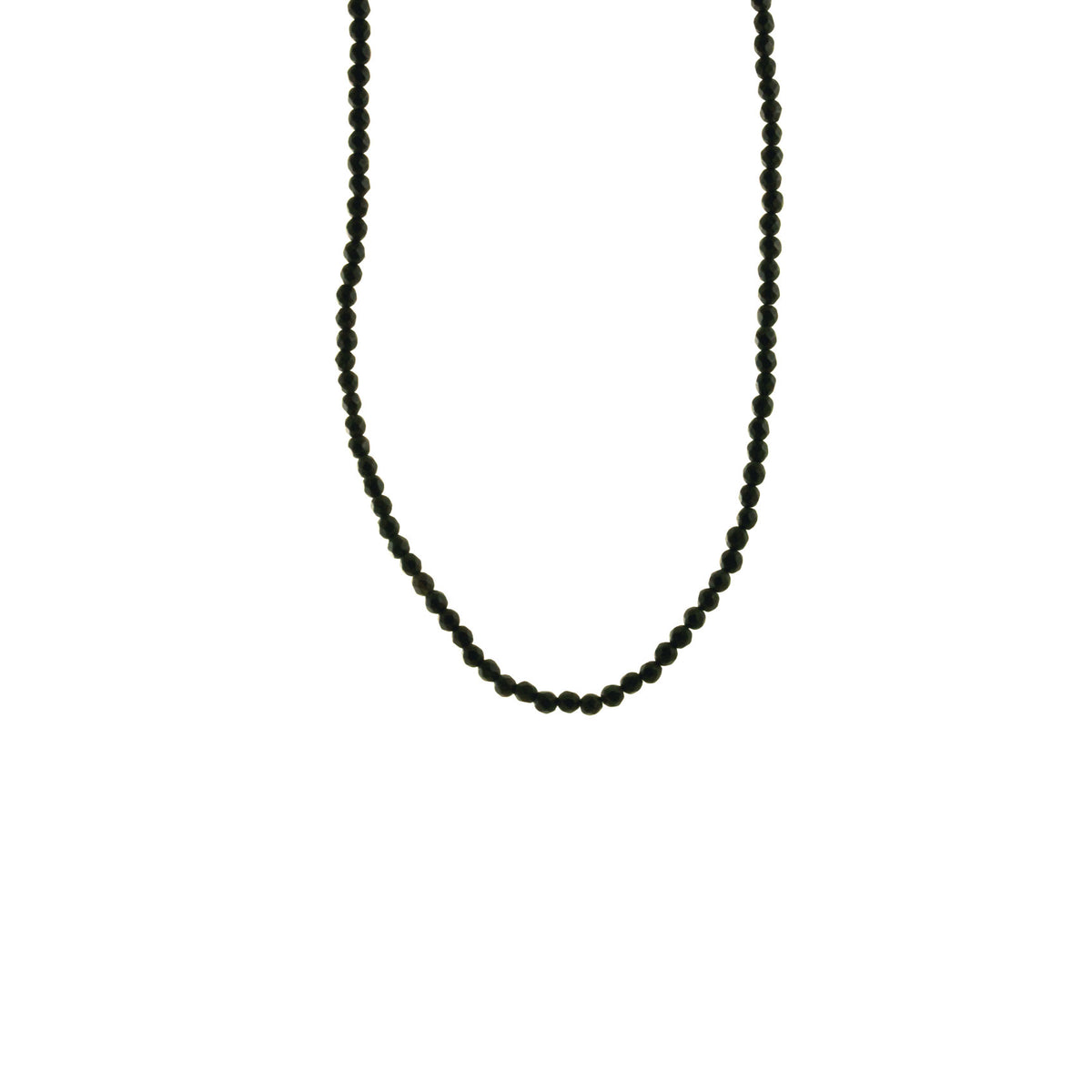 dark beaded necklace. Chain made of .925 sterling silver  featuring stranded bold round and semi round black volcano stone accents. Stones vary due to their unique and genuine nature.  Edgy and classic all at once.