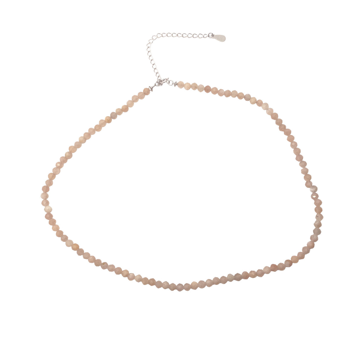 Unit price / perChic color stone beaded necklace. Chain made of .925 sterling silver and features stranded beautiful round and semi round light pink color stone accents. Stones vary due to their unique and genuine nature. Edgy and classic all at once. Choker 14 inch, 16 inch with 925 silver extender