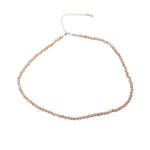 Chic color stone beaded necklace. Chain made of .925 sterling silver and features stranded beautiful round and semi round light pink color stone accents. Stones vary due to their unique and genuine nature. Edgy and classic all at once. Choker 14 inch, 16 inch with 925 silver extender