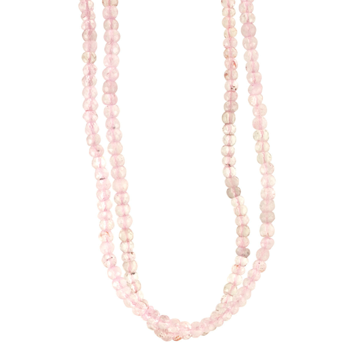 super chic mini Pink Rose Quartz layering necklace. Chain is made with .925 sterling silver clasp and dyed pink stones. Beautiful round and semi round pink stone accents. Stones vary due to their unique and genuine nature. Tie a knot in jewelry to fasten. For a classy and elegant look tie a simple knot in front. Loop the necklace around your neck for an edgy and dramatic feel. 30 inch length may be styled as a double strand necklace. Perfect for a pendant or to be worn alone.