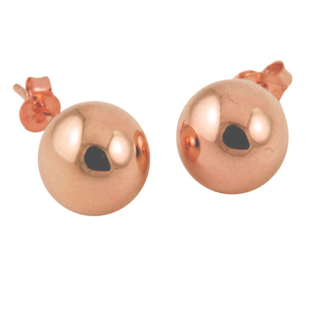everyday 14kt rose gold ball earrings made of genuine 14kt Pink Gold. polished shiny finish. hollow, light on ears.