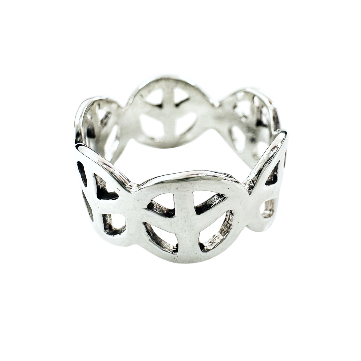 sterling silver peace band ring is made of solid .925 sterling silver  Featuring a solid band with peace motif at center. Polished finish.