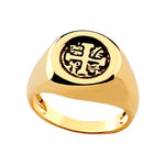 Unit price / perapop exclusives, vintage style coin ring, made of quality gold filled, .43 - .25 inch band width. Classic signet style. Unisex. Inspired by vintage spanish coins. Ring Sizing Guide -