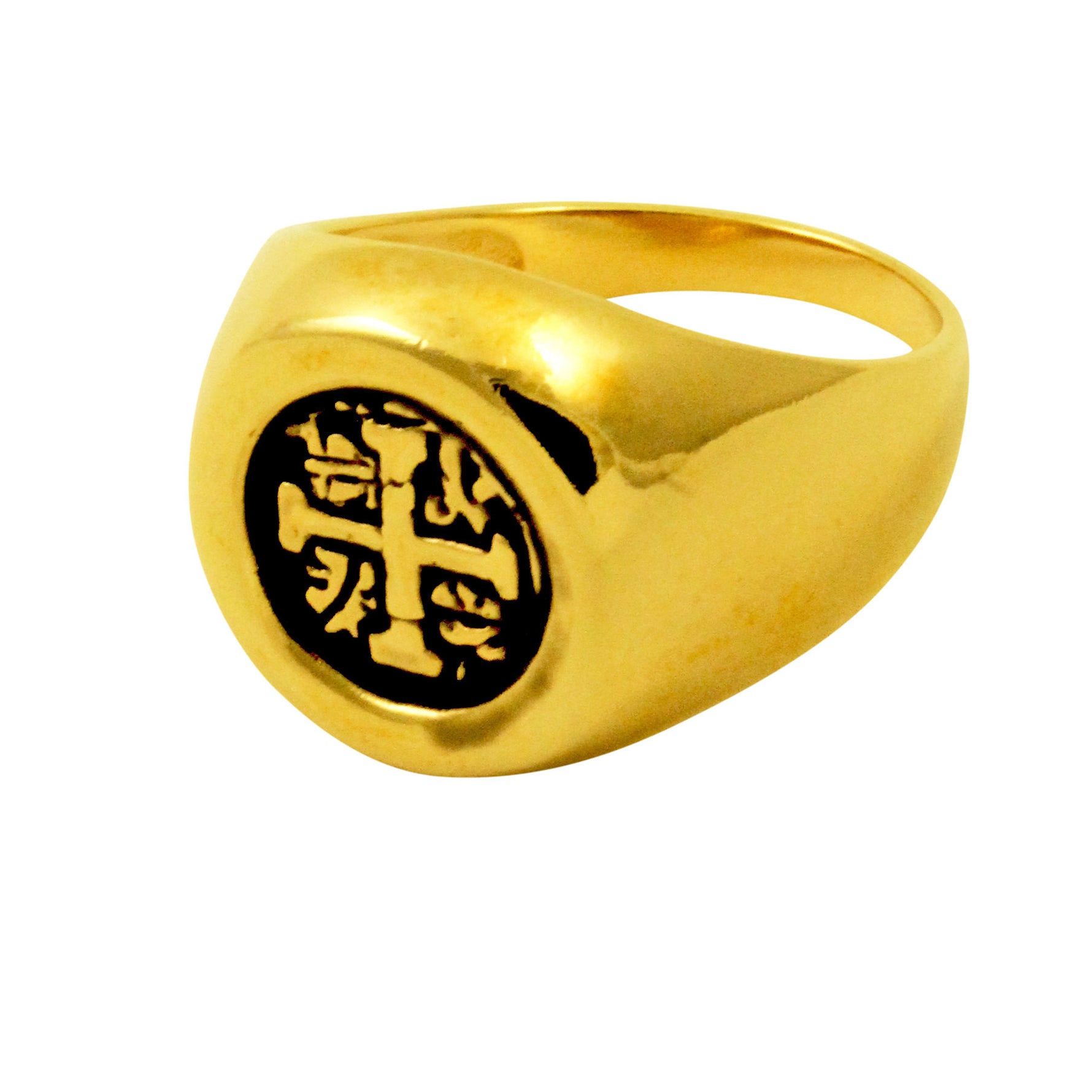 apop exclusives, vintage style coin ring, made of quality gold filled, .43 - .25 inch band width. Classic signet style. Unisex. Inspired by vintage spanish coins. Ring Sizing Guide -