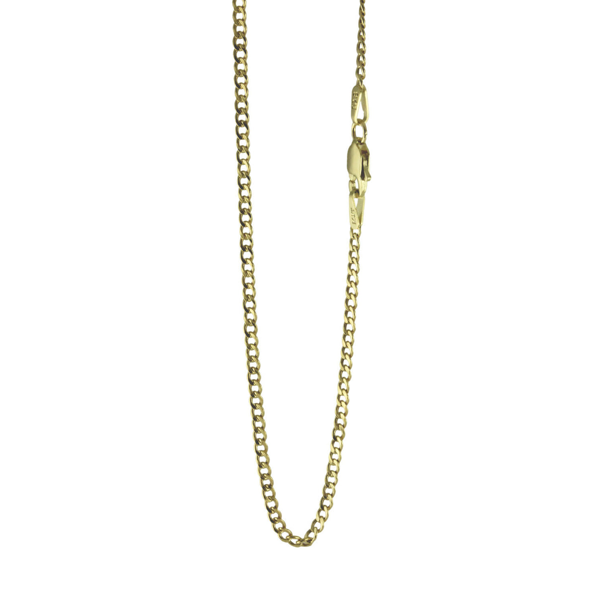 14k Gold curb chain necklace is the ultimate fashion staple. Made of 14k gold. Unisex necklace. Lobster claw clasp for a secure fit. Gold curb links are lightweight for comfortable wear. Great for layering with multiple gold chain necklaces. Cuban style links.