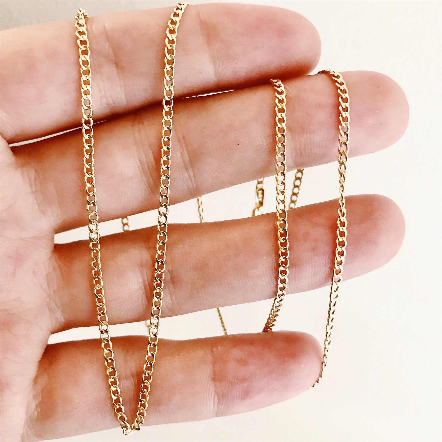 Unit price / per14k Gold curb chain necklace is the ultimate fashion staple. Made of 14k gold. Unisex necklace. Lobster claw clasp for a secure fit. Gold curb links are lightweight for comfortable wear. Great for layering with multiple gold chain necklaces. Cuban style links.