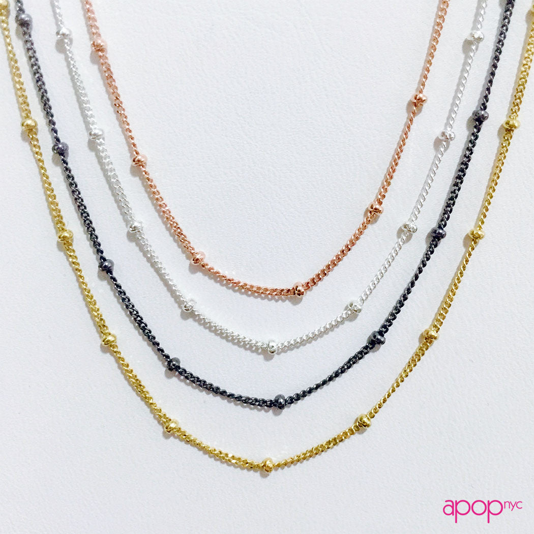 apop exclusive chain, featured in 4 fabulous tones, silver, blackened silver, rose gold and gold. wear this unique pendant chain with your favorite charm. Delicate enough for layering with multiple necklace, gold curb chain necklace is the ultimate fashion necessity. Made of .925 sterling silver and dipped in stunning yellow gold. Spring ring clasp for a secure fit. Gold curb links are strong. Italy.