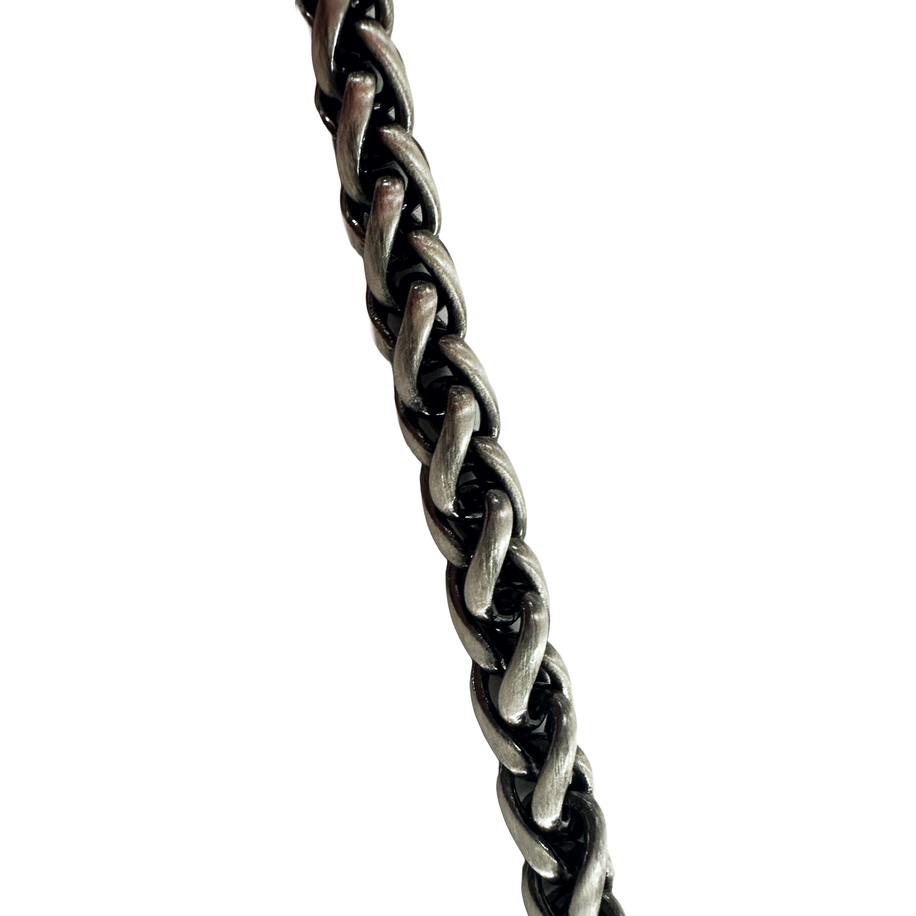 The perfect everyday chain necklace witha cool vibe. Made of .925 sterling silver. Gunmetal finish. A unisex necklace ideal for men and women alike. Gorgeous grey tone. Lobster claw clasp for secure fit. This wheat style chain link necklace looks good dressed up or down. Wear solo or layer with other chains. Italy.
