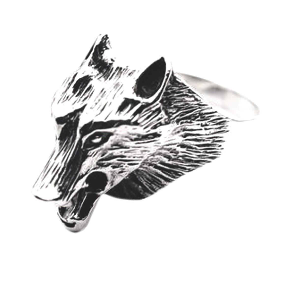 Unit price / perSilver Wolf Ring, Made of .925 sterling silver. Animal ring features a Wolf head. Intricate design with an oxidized/darkened accents. Unisex Ring.