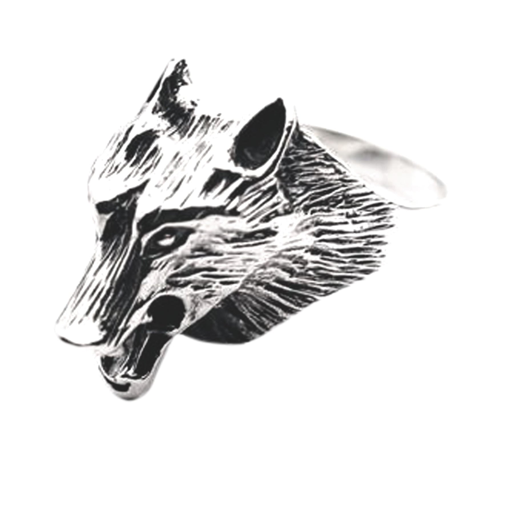 Silver Wolf Ring, Made of .925 sterling silver. Animal ring features a Wolf head. Intricate design with an oxidized/darkened accents. Unisex Ring.