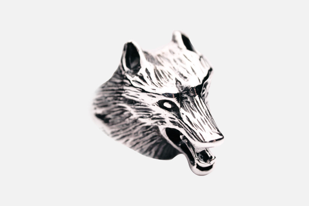 | Measurements: | Wolf motif: approximately .50 inch, .25 inch band width |