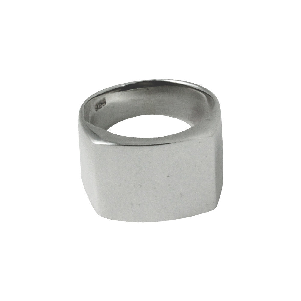 Unit price / perSquare signet ring, made of solid 925 sterling silver. Square signet ring features a wide band with with a square design at center. Classic signet style. Unisex. Initial may be engraved.