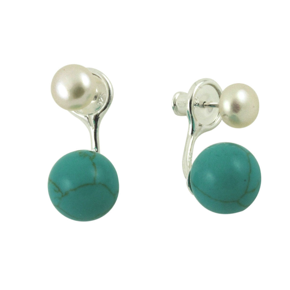 Sterling Silver Turkoise Ear Jacket Stud Earrings