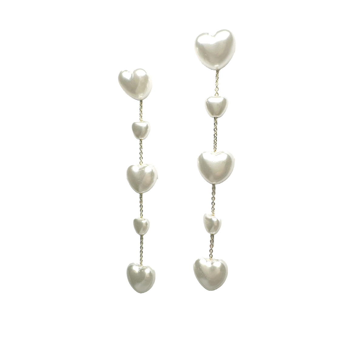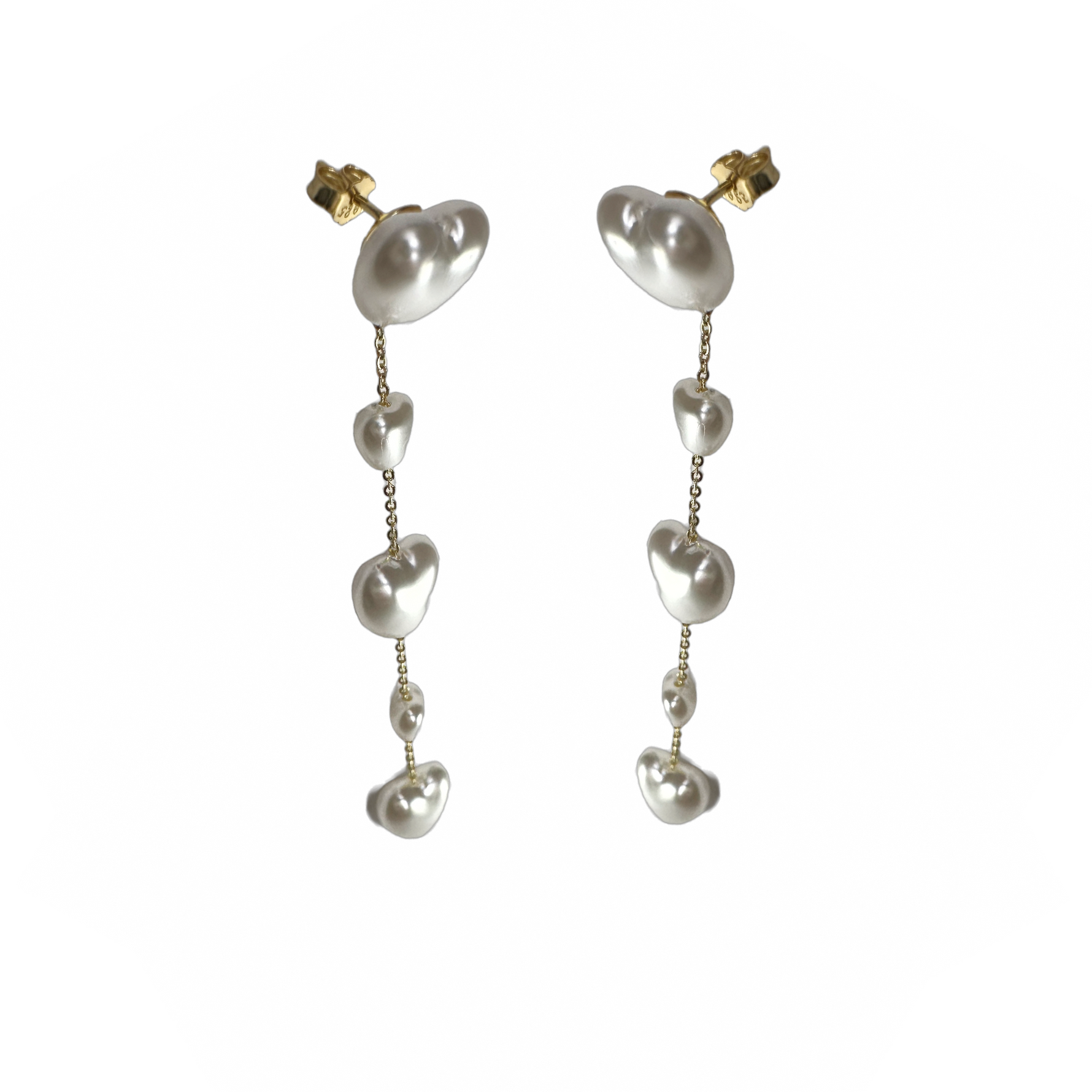 Pretty Pearl Jewelry. Heart shaped pearl earrings, Made of .925 sterling silver, goldtone finish chain and post. Freshwater pearl. Heart shaped simulated pearl. romantic dangle earrings.