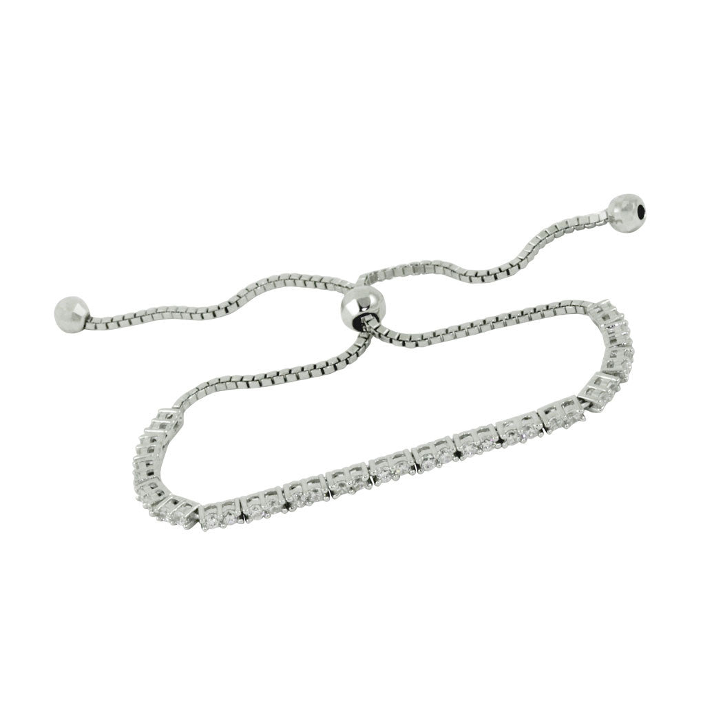 Unit price / perSterling CZ Adjustable Tennis Bracelet, made of .925 sterling silver, and cubic zirconia. prong setting features a 5mm clear CZ stone with nice clarity. Adjusts 6 to 9 inch