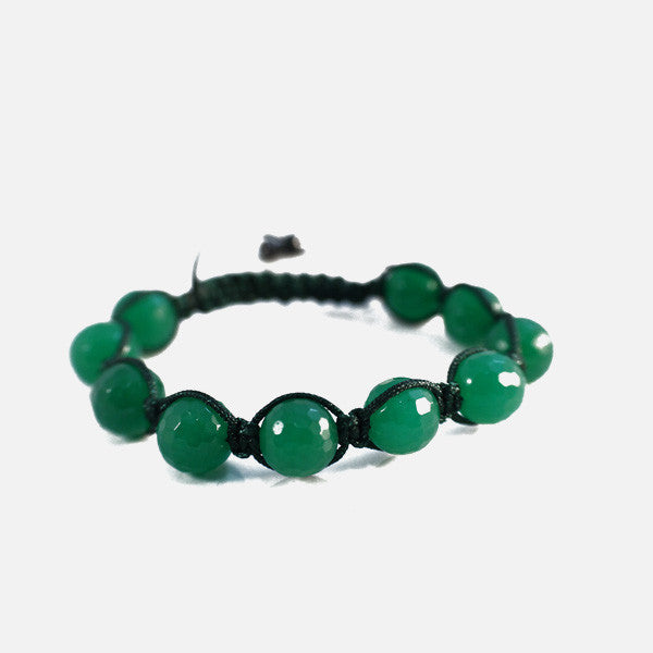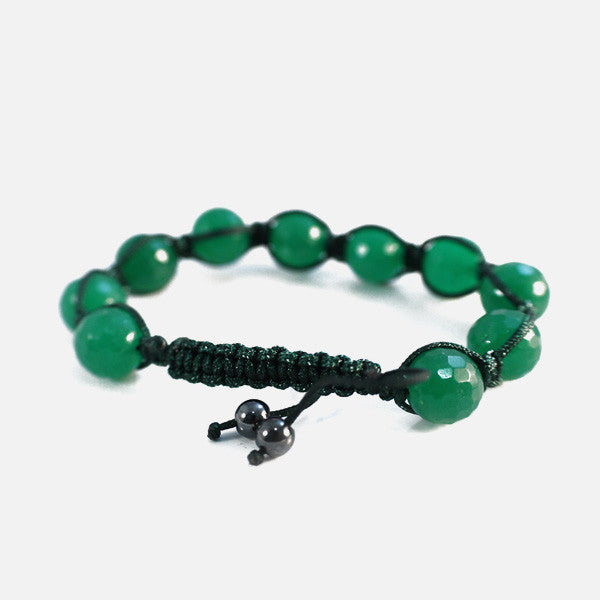 Made of nylon and green stone beads, this dark green woven bracelet features a complimenting bright green bead accent.. Fits up to 8.5 inch wrist.