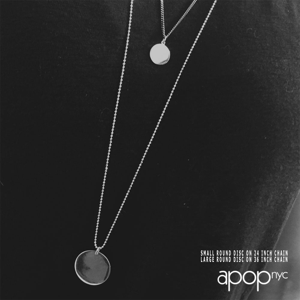 Unit price / perSmall round disc necklace, Made of .925 sterling silver. Round disc charm. Select your options, May be engraved. Engraved items are Final Sale. Engraving: 1-2 weeks for processing