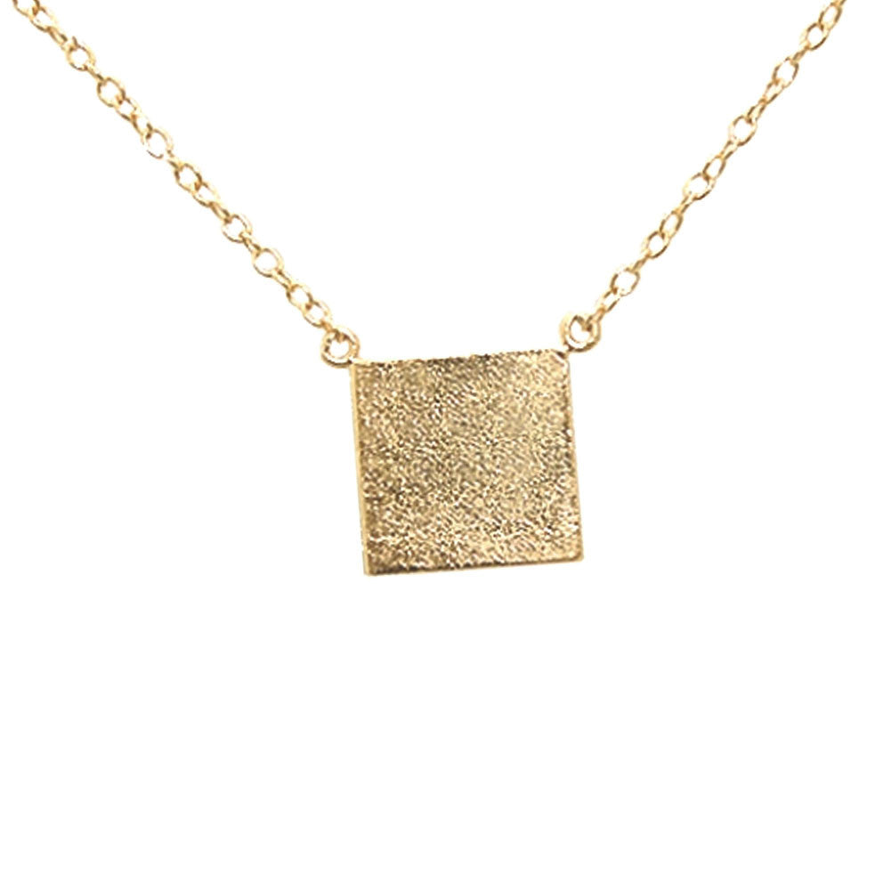 gold square pendant necklace, Made of .925 sterling silver. sterling silver chain necklaces features a square disc charm. May be engraved with (1) initial or number. Please see our Engraving Guide for more information. Please input letter, number or name in "order note" section at checkout. Block or Script. maximum characters: 1