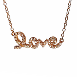 Dress up your neck with this elegant script love necklace. Made of .925 sterling silver dipped in rose gold, cubic zirconia accent. Features the word "love" in a delicate and beautiful script lettering at center. A classic necklace. Style with round disc earrings in gold for a simple yet refined look.
