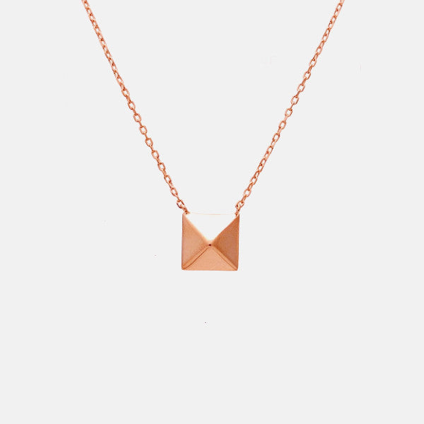 Shape up your outfit with this ultra square pyramid stud necklace. Made of .925 sterling silver and dipped in rose gold. Polished finish. Features a square pyramid stud at center. Stud is hollow for light and comfortable wear. A clean, geometric necklace that will add some snaz to your wardrobe. Layer or wear solo.