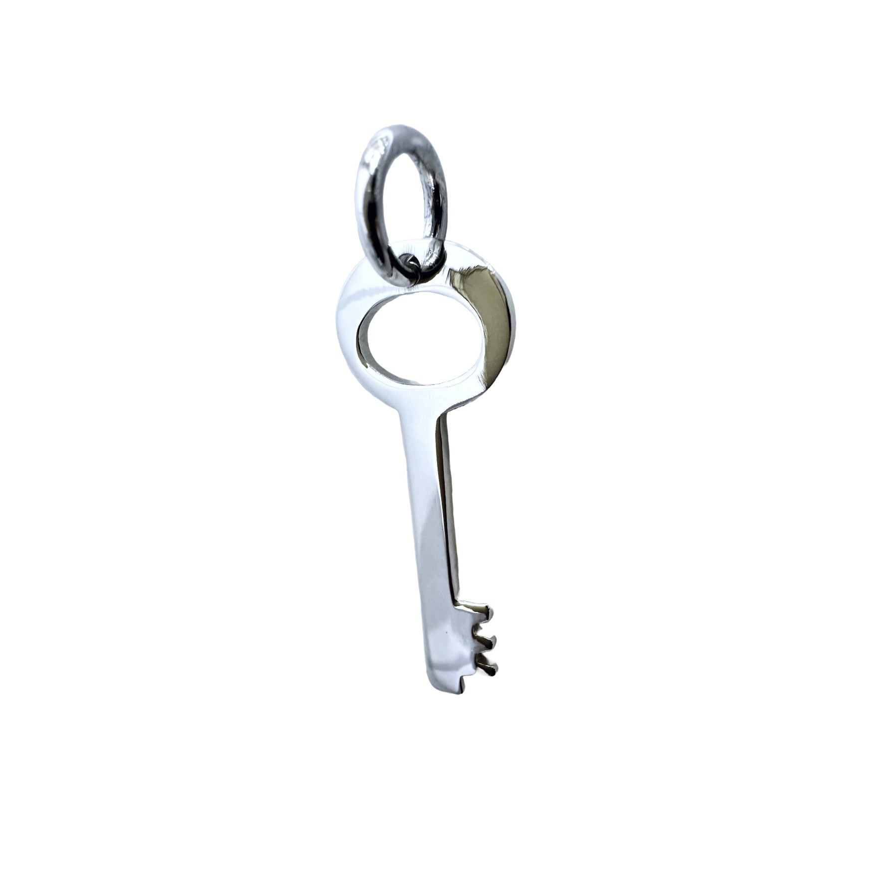 plain silver key pendant is made of solid .925 sterling silver. Polished finish. Pendant Only shown, may be purchased with beaded chain or use with your favorite chain. 2nd photos is for size reference.