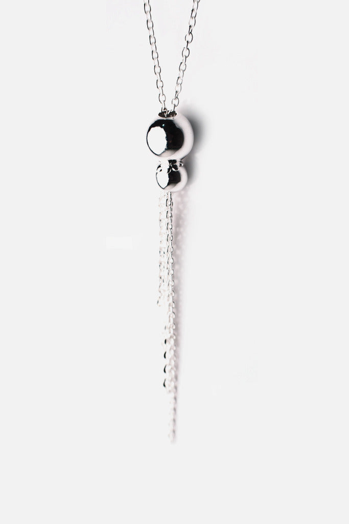 Unit price / perMade of .925 sterling silver. Silver chain features beaded bevel pendant with chain tassel motif. Italy. Bead is approx .37 inch diameter