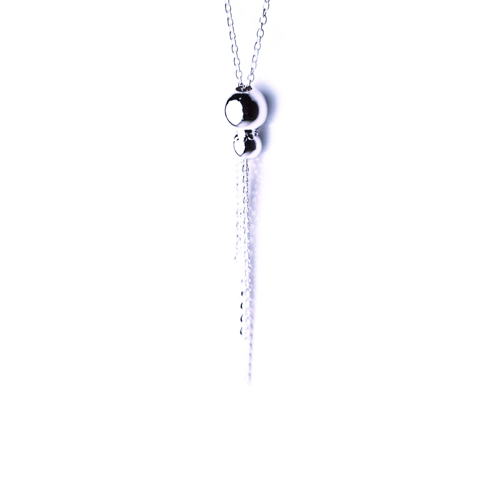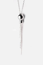 Made of .925 sterling silver. Silver chain features beaded bevel pendant with chain tassel motif. Italy. Bead is approx .37 inch diameter