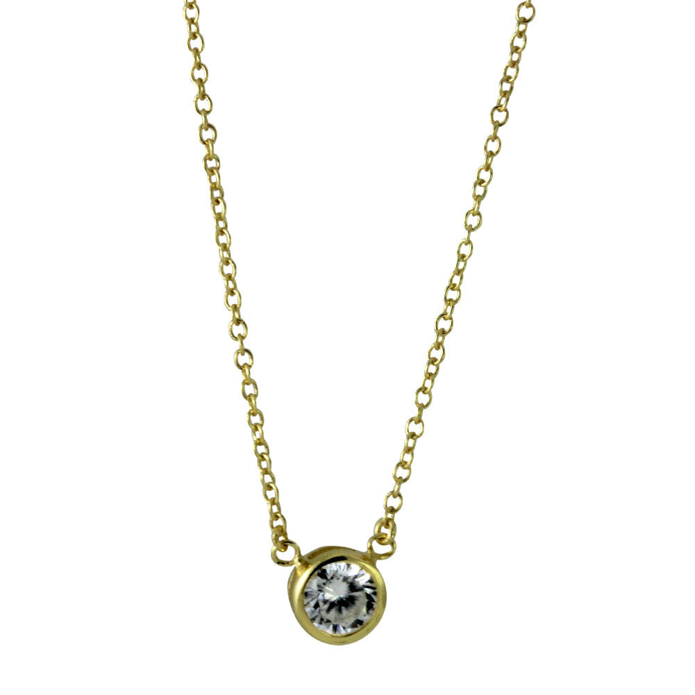 Mini solitaire necklace Made of .925 sterling silver. Rhodium Plated. Featuring a 6-7mm cubic zirconia at center set in bezel basket setting. Simple and versatile. Great for layering Picture is magnified for detail. Sterling Silver matching bracelet available.