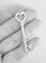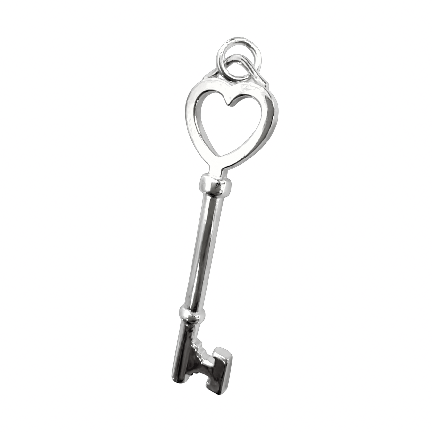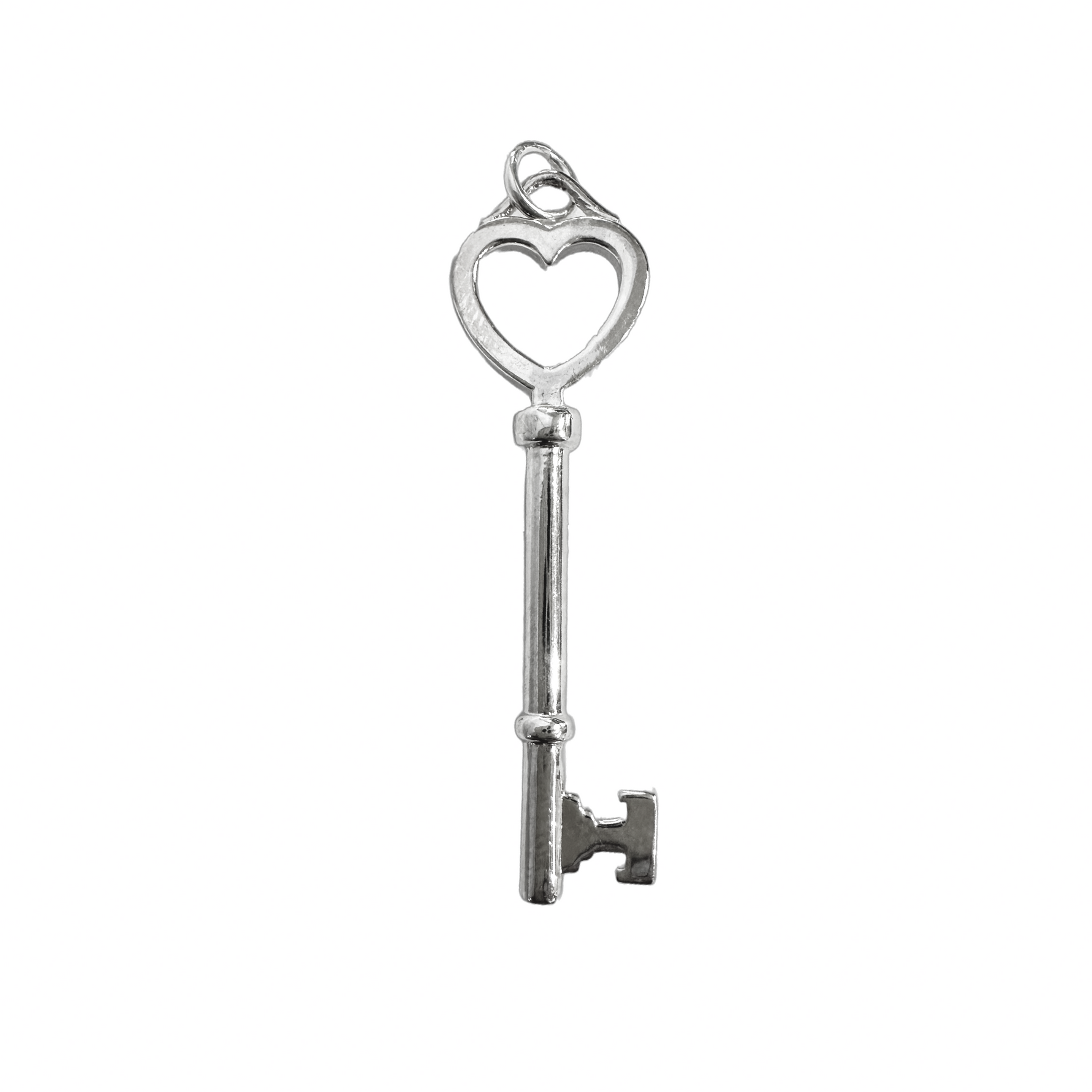 Unit price / perHeart shaped silver key pendant is made of solid .925 sterling silver. Italy. Polished finish. Pendant Only shown, may be purchased with beaded chain or use with your favorite chain. 2nd photos is for size reference.