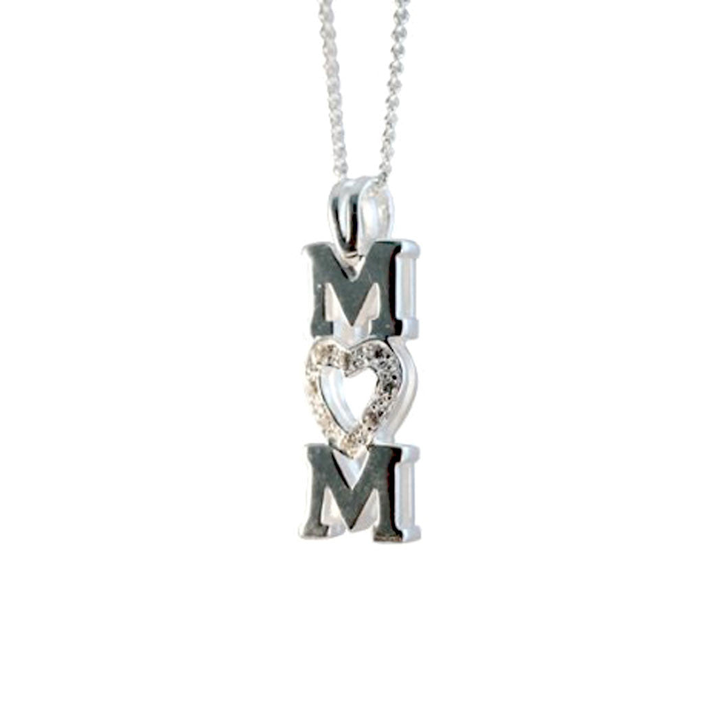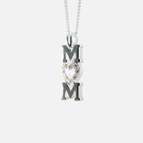 Sterling Silver Heart Mom Pendant Necklace