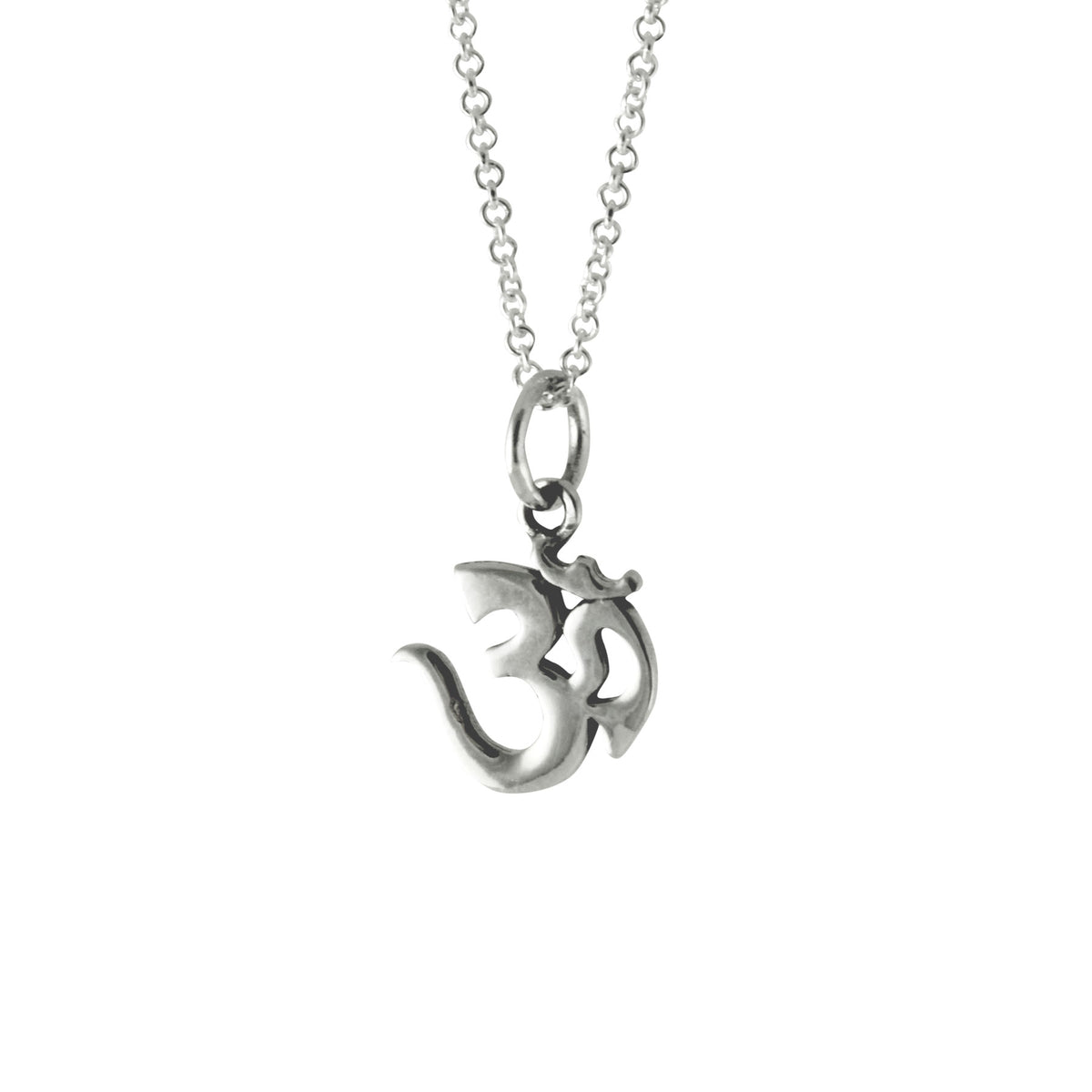 Unit price / perOm represents a venerated spiritual incantation made before and during prayer or meditation. Om symbol pendant necklace, Made of .925 sterling silver. Silver link chain included with a small Om charm. Om Charm; .60 inch diameter.