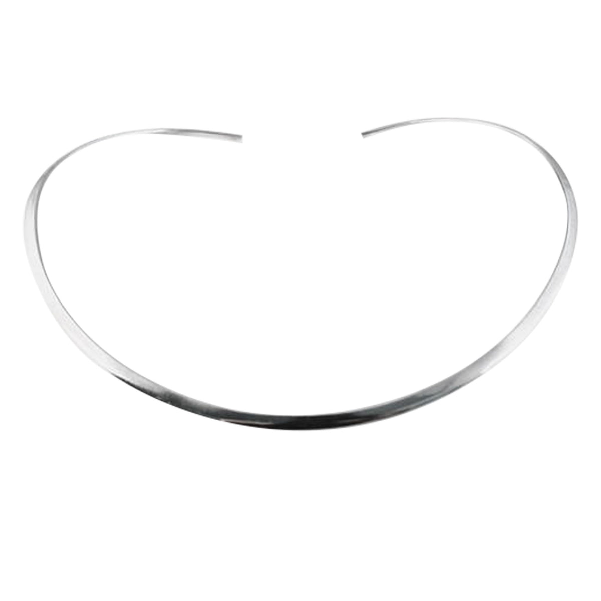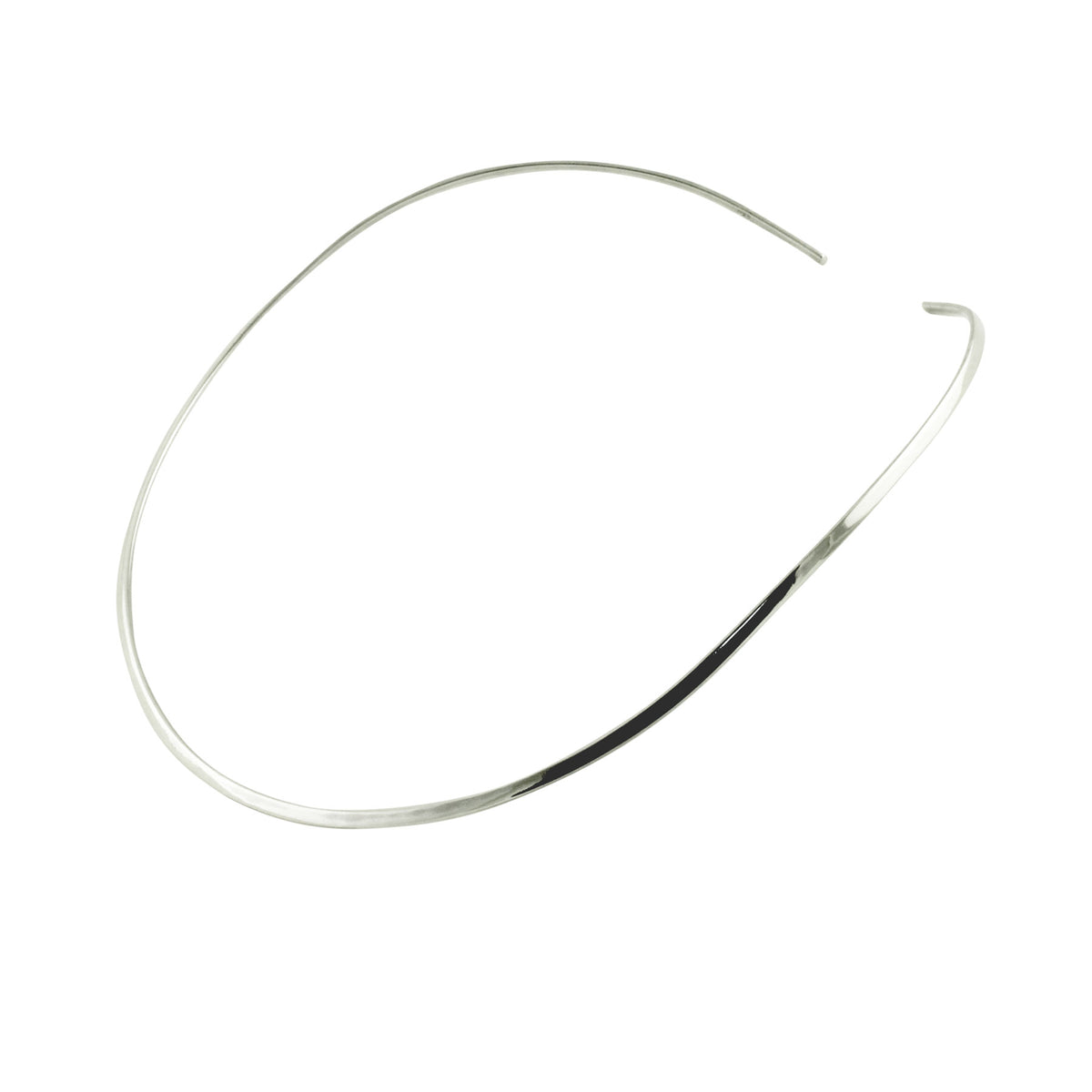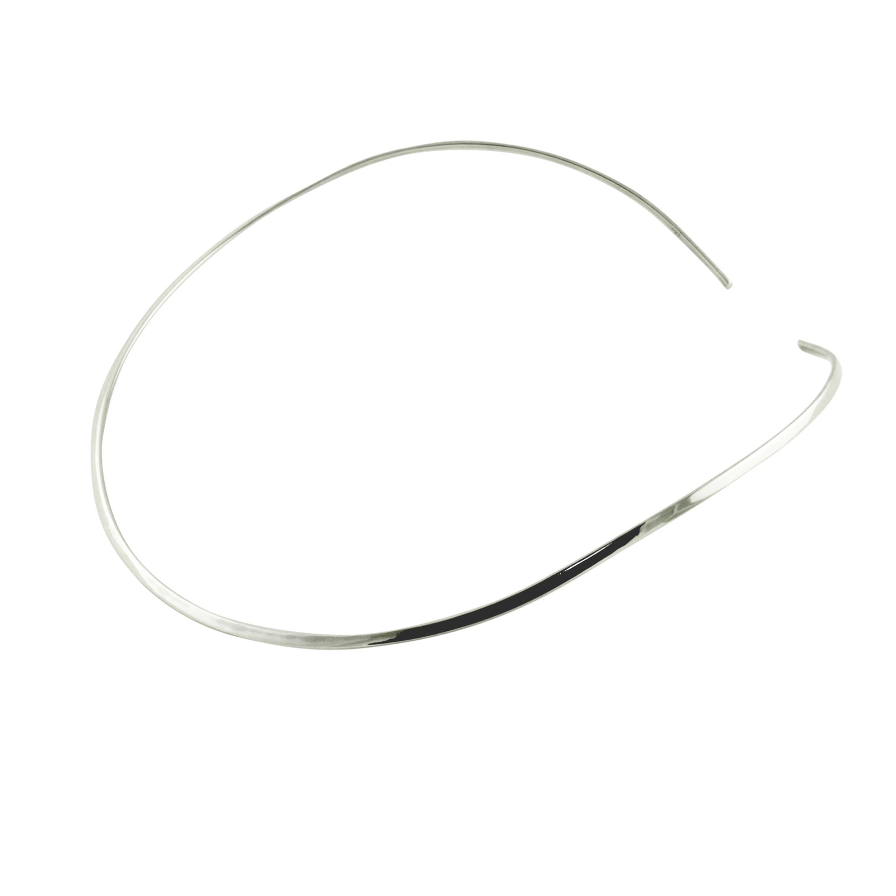 Sterling silver, thin 2.5mm collar necklace. Polished finish. Choker, adjusts to desired fit. 15-16 inch. Oval style.