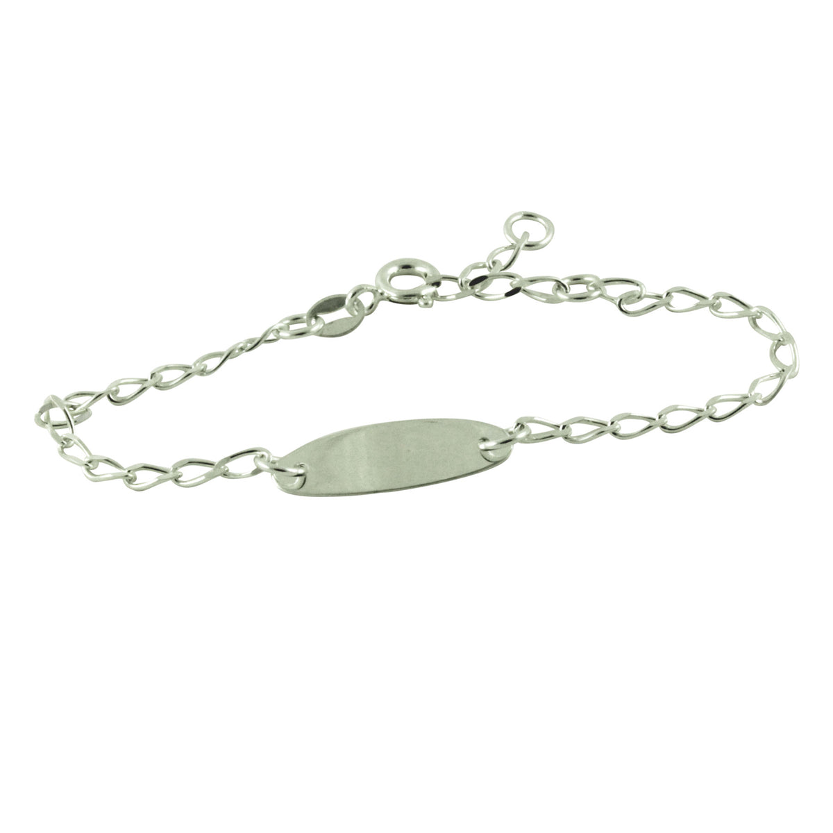 Unit price / perPlain ID bracelet, Made of .925 sterling silver. 6 inch. Simple Chain. Italy. May be engraved. Please see our Engraving Guide for more information. Engrave up to 8 characters. Length is suitable for young children or small wrists.