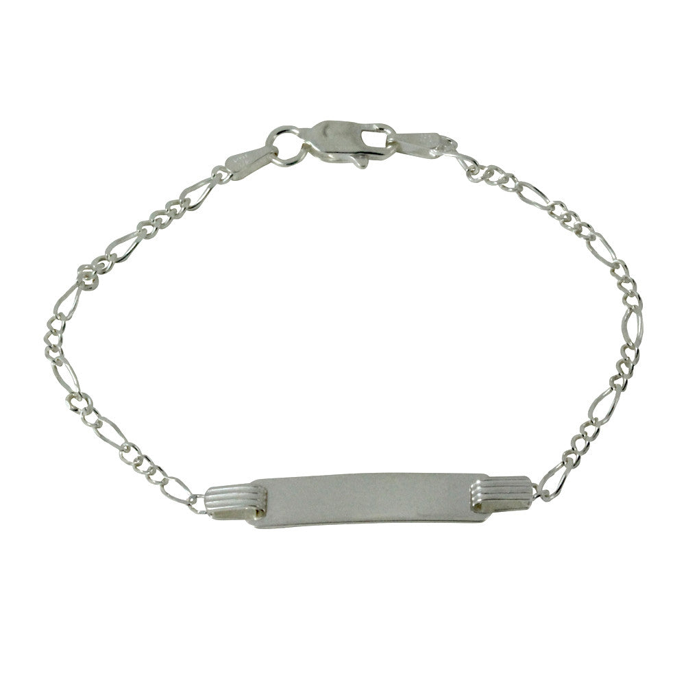 Made of .925 sterling silver. 6 inch. Figaro Chain. Italy. May be engraved. Please see our Engraving Guide for more information. Engrave up to 7 characters. Length is suitable for young children or small wrists.