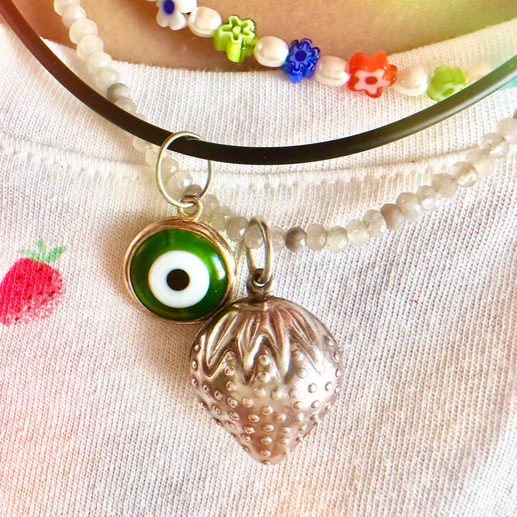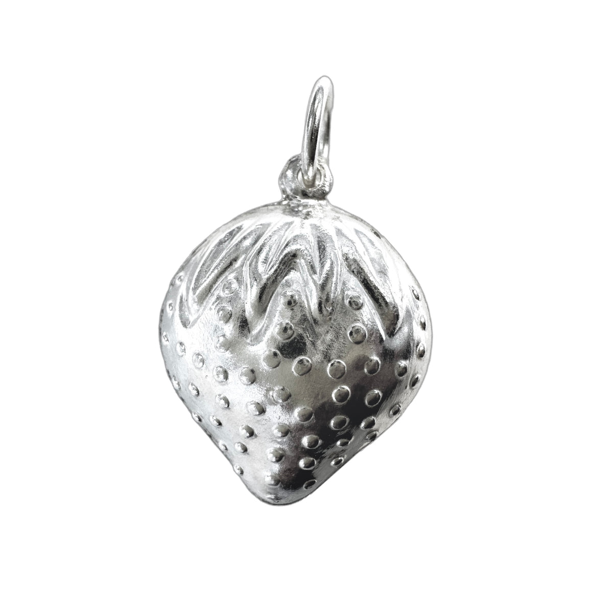 delicious strawberry pendant, set in .925 sterling silver. Add it to your favorite necklace or layer it with other fruit jewelry. Featuring a intricately strawberry. Strawberry dimples included.