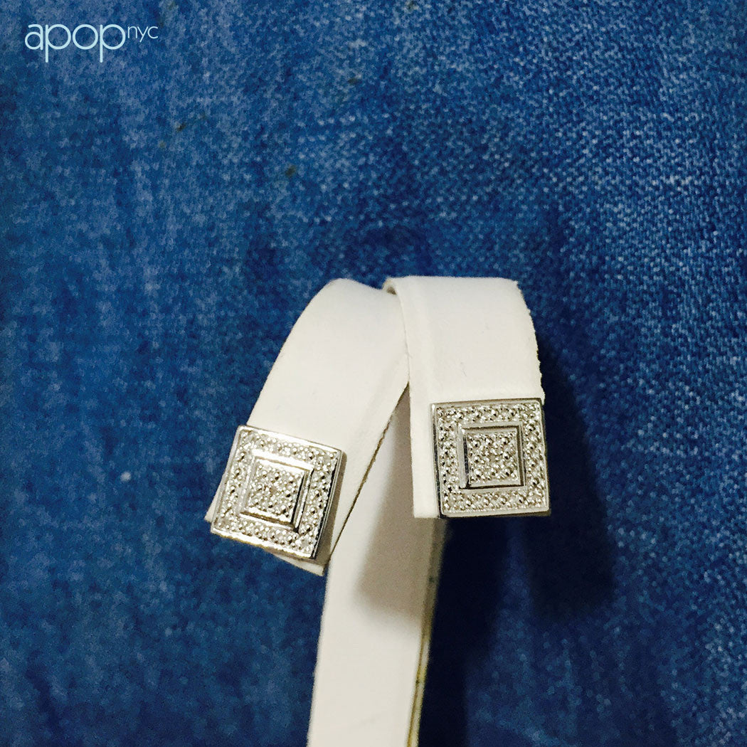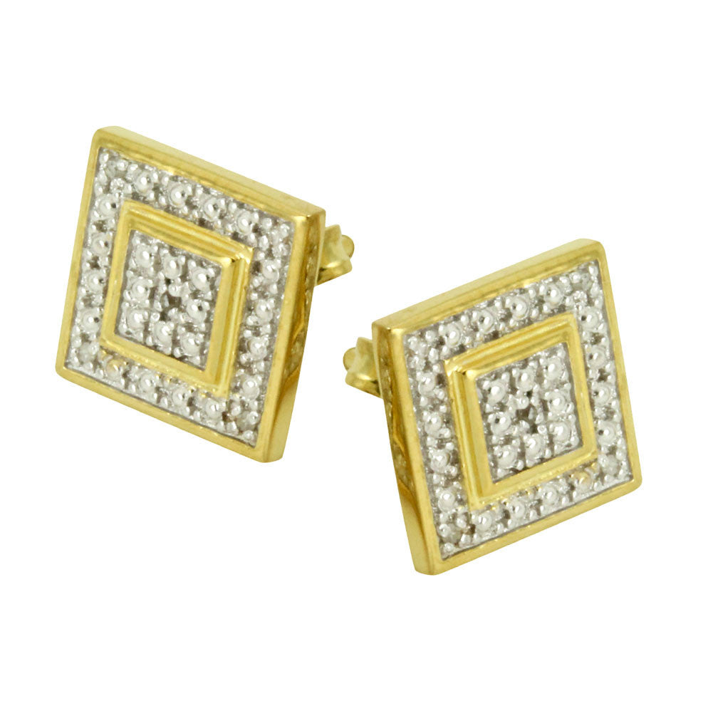 Stunning! two-tone 1/10 TDW diamond stud earrings. Made of .925 sterling silver, dipped in gold, for a versatile two tone finish. Accented with small diamonds. An array of small diamond stones give these earrings an unforgettable sparkle. Push back closure. Post earrings lay flat on earlobe. Unisex. Shop Today and Save!